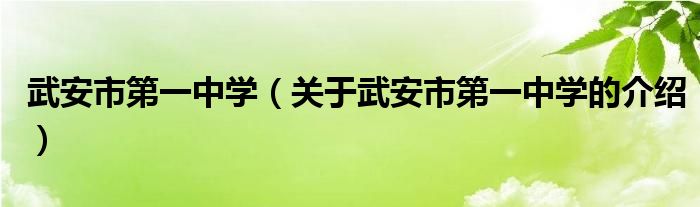 1、武安市第一中学(武安一中,Wu Anshi no. 1 high school)位于武安市纸厂街803号,是一所公立全日制普通高级中学。